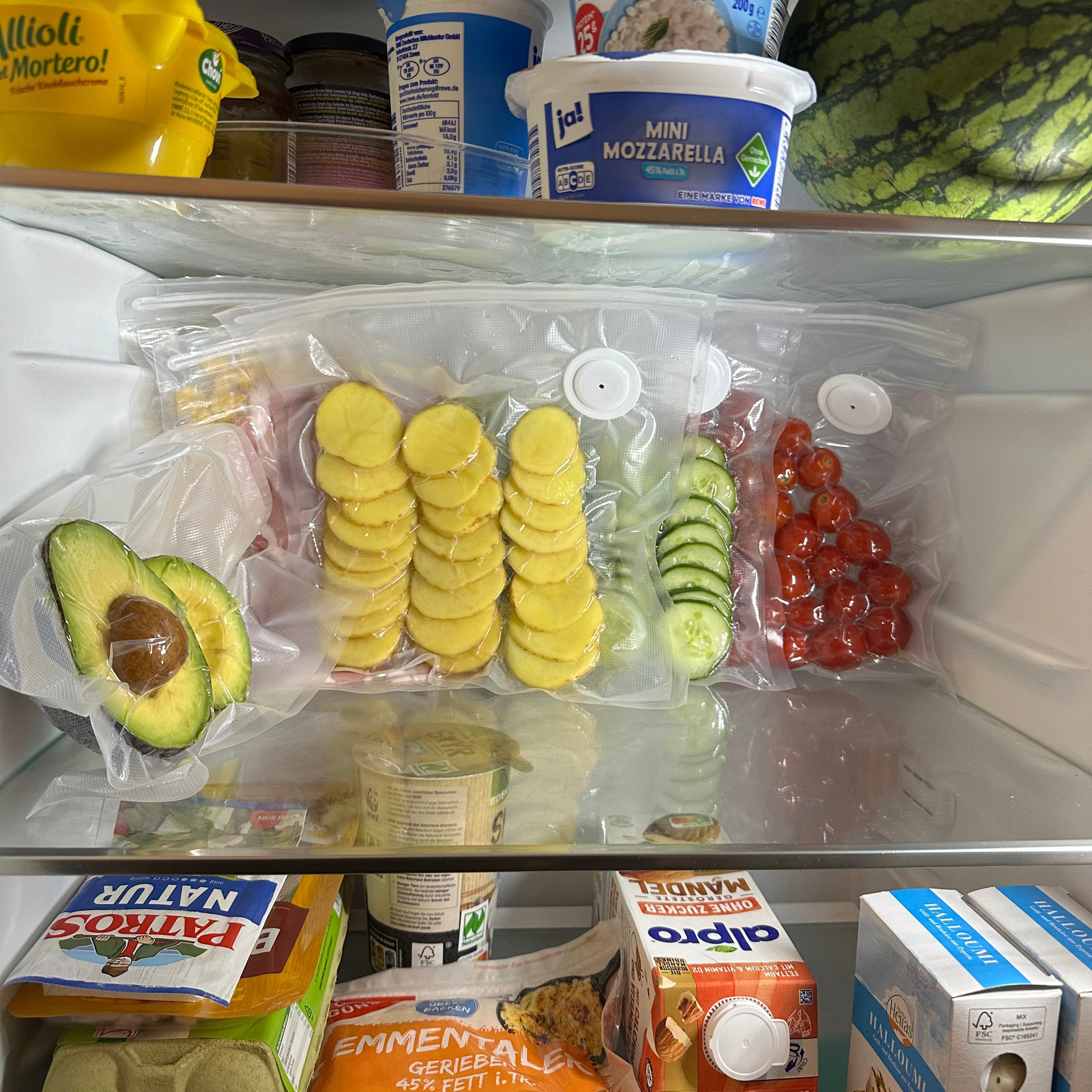 Ich bereite sonntags alles für die Woche vor dank dem Vakuumierer bleibt alles frisch und lecker. Absolute Empfehlung für alle, die Zeit sparen wollen!